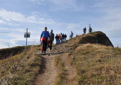 Aufgrund des schönen Wetters entschied man sich am 2. Tag für Frischluft anstelle eines Besuchs im Erlebnisbad Aquaria. Mit der Hochgratbahn ging es zur Bergstation am Hochgrat, auf deren Plattform die tolle Sicht über die Alpen beeindruckte. Auf einem Panoramarundweg wanderte man zum Hochgrat und anschließend wieder auf schmalen Wegen bei guter Weitsicht zur Bergstation zurück.